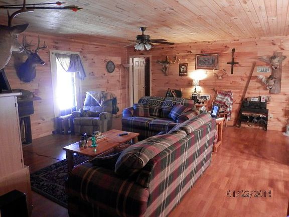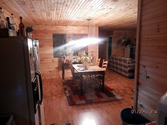 10ac+/- wooded Vinyl siding Metal roof CH/A Double carport Rustic throughout All pine bead board Laminate flooring Open floor plan Low up keep Metal building with wood stove Very private and Great Hunting