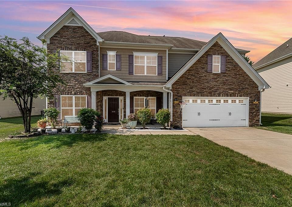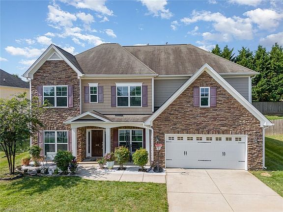 Welcome to this elegant 5-bedroom, 4-bathroom home in the Cottesmore community in High Point. Designed for modern living, the main level features an open floor plan with a spacious great room, cozy fireplace, formal dining area, and a stylish eat-in kitchen with a pantry and large island. Additionally, there’s a dedicated office space, a guest suite with a full bath, and a sunroom perfect for relaxation. Upstairs, the luxurious primary suite boasts a double vanity, walk-in shower, and soaking tub. Two more bedrooms, two full baths, and a versatile loft complete the upper level. Outside, a charming patio offers a perfect spot for outdoor dining and entertaining. Enjoy community amenities like a pool and tennis courts in this blend of comfort and style.