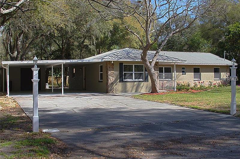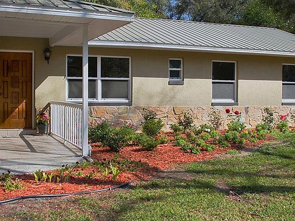 Fabulous Find! Make sure to take note of this amazing three bedroom two bath home in Fruitland Park. Enjoy peace of mind knowing you can move right in with a completely remodeled and updated home. The metal roof adds style and peace of mind with knowing you won't have the expense of replacement. Inside features stylish neutral colors, fresh paint, new A/C, updated fixtures, new windows, new flooring and great modern appeal. The kitchen has stainless steel appliances, new counters, a nice bar counter for entertaining and is conveniently open to the living room. Outside enjoy a large year with plenty of play space and even an exterior gazebo. There's no lack of storage with a large laundry/mud room, and even an extra storage shed. This home is a must see!!