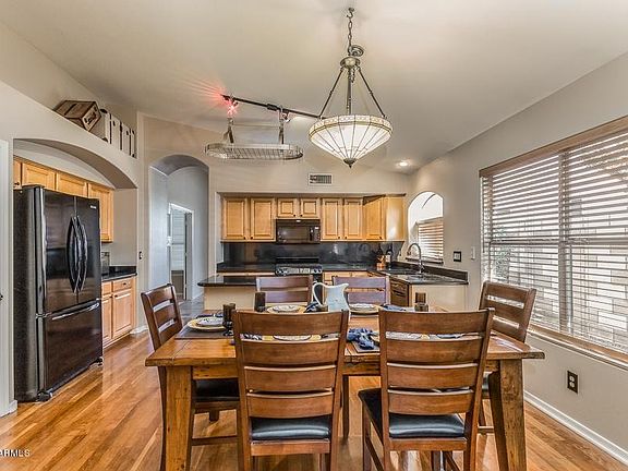 This Gorgeous 3 Bedroom, 2 bath home, plus den with a Two Car Garage and a pool will knock your socks off so do not delay to see. Lots of upgrades including travertine and hardwood in the main areas. The kitchen has maple cabinets, granite counter tops and has eat in kitchen & great room concept. The den/or 4th bedroom has custom built-in Desk. Back yard has a sparkling pool & covered patio that is great for entertaining. Located in Desert Ridge, close to shopping, schools, golf courses and great restaurants