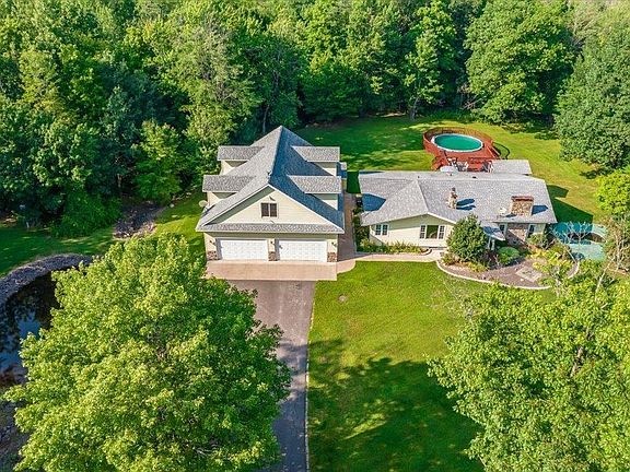 If this isn't what you are looking for, then what you are looking for does not exist. This home has a little of everything for everyone. Do you need room for guests? This home has 4 bedrooms and 3 bathrooms to support their needs. Do you want to invite people over and have gatherings? There is a sunken living room on the upper level that is surrounded by windows with views of the front yard and an amazing sunken family room in the lower level that is like no other space you have seen before. There is a beautiful formal dining room with tons of windows looking out over an enormous, multi level deck with a hot tub and an above ground pool with a wrap-around deck. Do you want to feed a crowd? The kitchen is large and has all of the high end details you a gourmet chef would expect, featuring newer appliances, ceramic tile flooring, granite countertops and tons of cabinets for storage. Do you need a garage and a large indoor party space? This home has a huge 40x50, garage with in floor heat that has a slab that was prepped for a lift, lots of lighting, high end overhead doors and a finished upper level that comes with everything needed to have a great gathering. There is a pool table, dart boards, places for people to rest, a bar and tons of floor space for other activities like twister. Do you like the outdoors and the peace and quiet of the country? This home has an 11 acre lot that is beautifully landscaped with a pond, a creek and a water feature outside the living room. There is tranquility here because you are not on a busy ro0ad, but you have easy access when it is time to go somewhere. The driveway is paved, the siding is steel, the roof is newer....the list goes on and on! There is an outdoor boiler, drilled well, and a new boiler in the house that was installed last year. Appliances are roughly 3 years old, roof on the home is 6-7 years old, outdoor boiler is 11 years old, hot tub is new this year, garage was built in 2010/2011, garage slab was prepped for a hoist, hardwood floors were refinished 4-5 years ago.