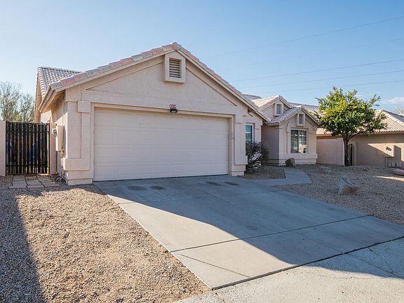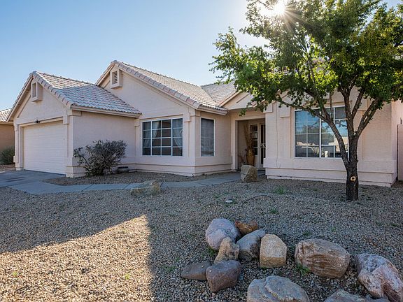 This charming home in the highly desirable neighborhood of Tatum Ranch features 3 beds, 2 baths, an open floor plan, and is located adjacent to a wash allowing for extra privacy. Upon entering you are greeted by the spacious vaulted ceiling family room. The kitchen is open to the family room and offers white-wash oak cabinets, breakfast bar, pantry, large bay window and sky light, and a dining nook. The master suite is split from 2 secondary bedrooms. The master bath features dual sinks, separate shower and tub, and a walk-in closet. Step outside to the large backyard to find a covered patio, a mini pond, fire pit, wrought iron and block fencing, and plenty of space for entertaining. Schedule your showing today!