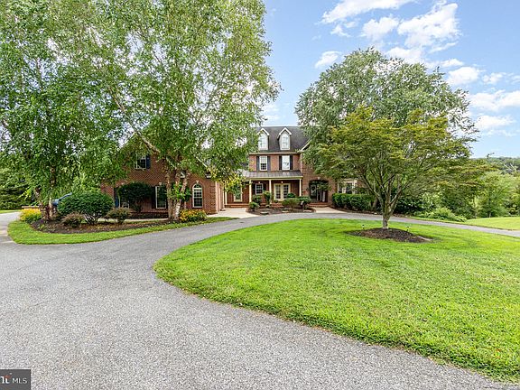 Welcome to this phenomenal 6 bedroom, 5 full and 2 and a half bath home with a 3 car garage on over 7 acres in the secluded neighborhood of Dove Hill Estates in Street, MD. This home is all brick and boasts over 7300 square foot of luxury living space on 3 levels. Three decks look out over the 7 acres of green grass followed by woodlands beyond. The property has a large cleared yard, which then has two wide trails that lead down to a yard beyond the yard in a cleared wooded grove with a stream running through it and wooden bridge, fire pit and woods with four wheeler trails throughout. There is a large wood shop and a second shed on the property, a paver patio with built in fireplace and farmland and woods in all directions of the rear. Pull into the circular driveway or park in the three car garage or parking pad and take the walkway to the large covered front porch. The front door opens into the main level with wood flooring throughout both upper levels, coffered ceilings and luxury trim work throughout. The main level hosts main level living with an owners suite with its own private deck, walk in closets and large modern bath with double vanities, walk in tiled shower and soaking tub. The luxury gourmet kitchen features top of the line cabinetry, granite countertops, and large island, custom backsplash and all high end stainless appliances. There is also a walk in pantry, separate butlers pantry and granite wet bar around the corner between the kitchen and formal dining room. The kitchen opens into a casual dining area, a sunroom w/ pellet stove, and a living room with tons of windows to enjoy the view and a stone work fireplace that stretches up to the gorgeous coffered ceilings. Also on the main floor is an open foyer with a deep coat closet, an office, a large laundry room with a tiled pet washing area, and access to the 3 car garage as well as a separate stairwell to the above garage suite. Taking the stairs to the second floor brings you to a landing overlooking both the foyer and living room with access to the third deck. The views from this deck are absolutely beautiful. There are four bedrooms up here and two full modern baths. One of these bedrooms has a secret access bookcase that pushes open revealing a secret room and hallway that leads to the above garage suite. Above the garage is a large private bedroom with its own modern bathroom with walk in shower. Taking the stairs to the basement brings you to a large living space perfect for entertaining, relaxing or play which also includes a full bar custom cabinetry with under lighting, The basement also houses a gym , a large bedroom, with a a fifth full bath, a convenient powder room and a huge storage/mechanical room which also houses a secret room for storage of valuable items. French doors off of the rec room lead out onto a large screened paved porch below the deck. This home is a dream, and has everything you could possibly need, it is pristine, fully updated, the views are astounding and the property is magical! This is one that needs to be seen in person to be fully understood, make your appointment today!