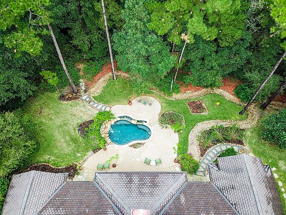 Sprawling 1 1/4 ac luxuriant lot situated on a quiet cul-de-sac in the Estates of Benders Landing. Enjoy this lush oasis-like retreat, featuring a spa pool, sunroom, tall & mature pine trees, as well as much appreciated PRIVACY! Grand entry leads to a splendid ambiance showcasing intricate woodwork, hardwood flooring & beautiful light fixtures. Discover the formal dining or private study on either side. The heart of this home is its gorgeous kitchen open to the family room, crowned by an elegant vaulted-ceiling, promoting a stunning fireplace that opens to the island kitchen. Built with attention to detail this home provides so much storage, including an extra room w/ floor to ceiling shelving. Amazing chefs kitchen featuring gorgeous granite, beautiful cabinetry with pull-outs & spice racks, high-grade stainless steel appliances, including a 6-burner dual-fuel stove/oven & TWO full-size ovens! Check out the coffee bar in the pantry and a much-appreciated mudroom niche for damp days.
