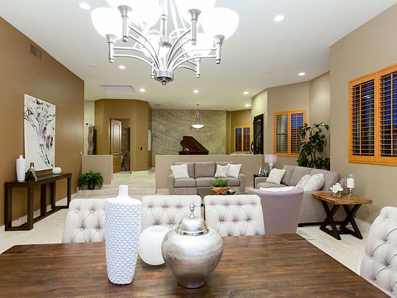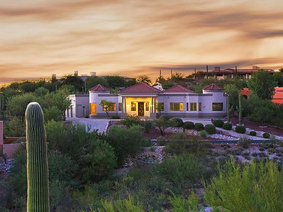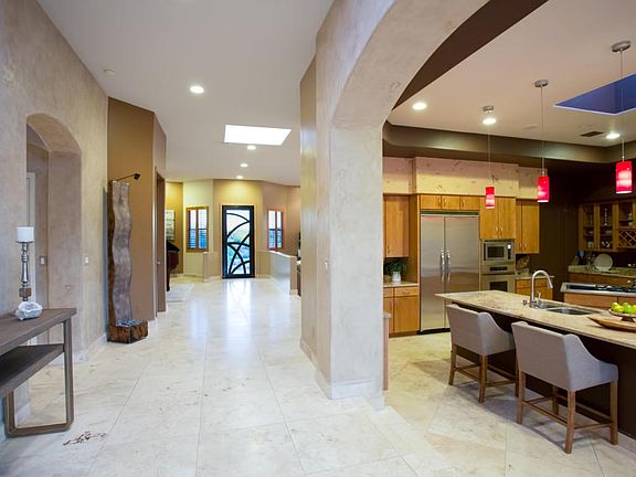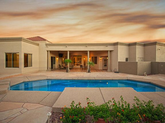 * Stunning contemporary on a very private homesite w/city & mountain views in prestigious gated Bellas Catalinas Estates. This exceptional home has it all with 5007 sq.ft , foyer entry, exquisite living room & dining room w/high ceilings , walls of windows, wet bar , sensational gourmet island kitchen w/2 islands, granite countertops, stainless steel appliances, gas stovetop, lovely breakfast area, travertine tile flrs (no carpet) incredible media room, billiard room, exercise room, 4 bedrooms , 4 baths, master suite w/sitting area, fireplace, luxurious bath w/ gorgeous onyx countertops, designer sinks, jacuzzi tub, separate shower, amazing walk in closet & 3. car gar. Enjoy fabulous lg bkyd w/cov'd flagstone patio, pool, spa, grass & views!. Flr pln under photos/virtual tour.