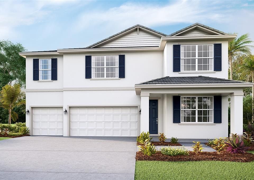Under Construction. This two-story, concrete block-constructed home features a flex space and a separate dining room upon entry. A well-appointed kitchen with a walk-in pantry and dinette overlooks a spacious great room that leads to a covered lanai. The first floor is complete with a guest suite and a full bath. Bedroom 1 with an ensuite bath provides dual walk-in closets and connects to a spacious laundry room for convenience. Three additional bedrooms, one with an ensuite bathroom, can be found off the grand bonus living room. Pictures, photographs, colors, features, and sizes are for illustration purposes only and will vary from the homes as built. Home and community information including pricing, included features, terms, availability, and amenities are subject to change and prior sale at any time without notice or obligation. Room Feature: Linen Closet In Bath (Primary Bedroom).
