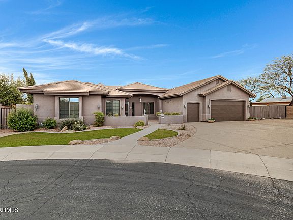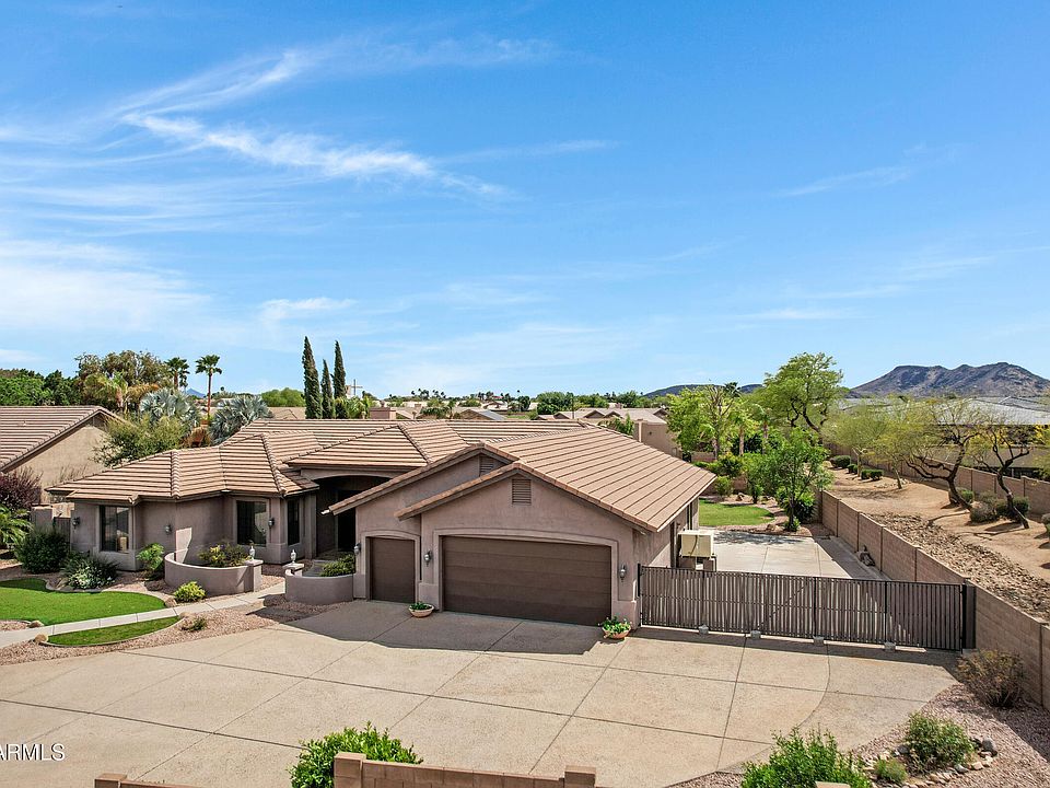 * LOCATION * VALUE * REFRESHED PRICE * WHAT ARE YOU WAITING FOR? * Within minutes to everyday amenities AND Lake Pleasant, this beauty is situated within an intimate GATED community and resides on a PREMIUM .38 acre CUL DE SAC LOT. Move-in ready and awaiting your arrival, this property boasts overall style inside and out. Inside, with its natural flow, the livingroom with gas stone fireplace, dining area with coffered ceilings, and kitchen with eat-in nook, abundant cabinetry, island and breakfast bar beckon All for gathering and entertaining. The spacious PRIMARY ENSUITE invites relaxation with its DUAL VANITIES, oversized GLASS BLOCK SHOWER, SPACIOUS WALK-IN CLOSET, AND PRIVATE EXIT to backyard amenities. Venture outside, where the quiet location commands your attention and provides the perfect backdrop to the massive covered patio, landscaped yard with BUILT-IN BBQ, lush grass, ceiling fans, and HUGE side yard with RV GATE! Workshop? Garage storage? Home Gym? Ofc Space? Don't miss the FLEX ROOM connected to the main house and 3 car garage! With it's huge list of amenities, you have to SEE this stunner to BELIEVE it - see it NOW before it's GONE!