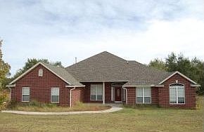 Country in the city! Norman Schools. 4 bedroom with study and 7 x 10 outdoor storm shelter. Kitchen has lots of storage and is open to living area. 2 covered patios look out to rolling wooded lot. Garage is Tandem.