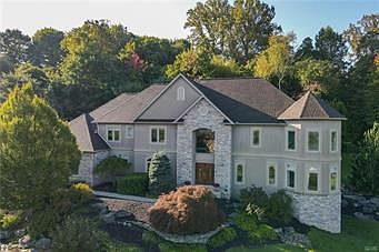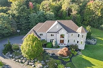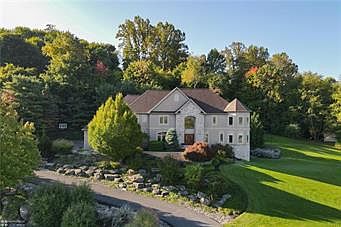Perched high atop a hillside in Blue Ridge Estates this stately home has views that go on for miles. The 2-story foyer welcomes you flanked on either side by the living and dining rooms. This grand feel continues into the 2-story family room with stone fireplace and sky lights. The gourmet kitchen with GE Monogram & Bosch appliances serves as a focal point for entertaining. The 1st floor includes nanny or in-law quarters with a private bedroom, full bath and library. Upstairs, the master suit is the ideal retreat with fabulous views and a cozy 2-sided gas fireplace. 3 additional BRs, 2 BAs, a laundry room and a playroom complete the upstairs. The walk-out lower level allows for entertainment & relaxation featuring a theater room, gym, wet bar, rec room, workshop area and full bath. With 4964 SF on 2+ acres w/ a 4 car garage on public utilities in Southern Lehigh, this is a truly special place. Easy access to I-78 & PA turnpike & close to SVCC, Rails to Trails, Promenade Shops & more.