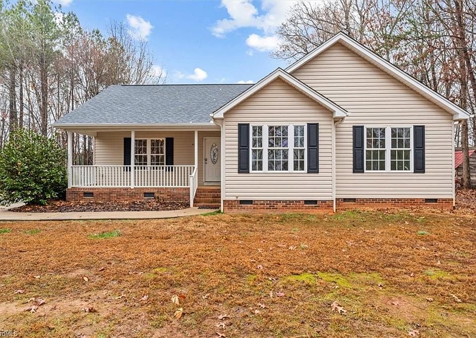 A piece of country paradise is here. Snuggled back off the road with trees lining property on a 1+ acre lot sits a beautiful home with all the extra things!! A detached double door garage/workshop with a lean on back, a storage building with a lean as well & a detached carport!! The home is 1450+ sq ft, offering 3 beds & 2 full baths! New paint. New carpets in bedrooms & new roof! Living room is good size with vaulted ceilings. Kitchen appliances will convey. Primary has trey ceilings, large walk in closet & en-suite bath has dual vanity, soaking tub & awesome walk in tile shower. Nice back deck & patio, perfect for entertaining. With this home and all the EXTRAS, it’s a winner! Check it out!