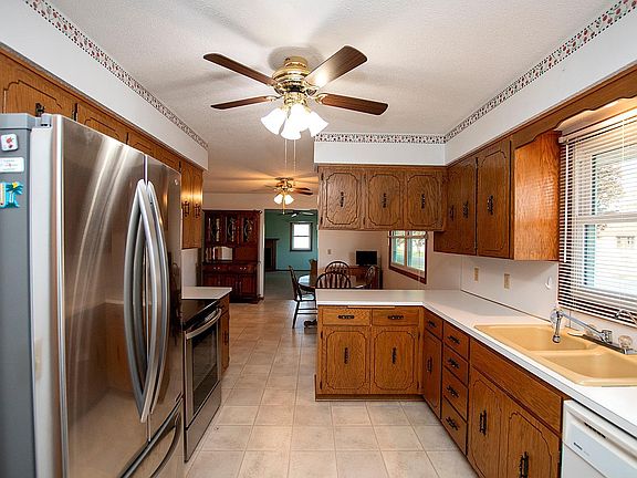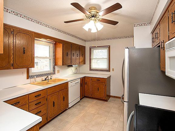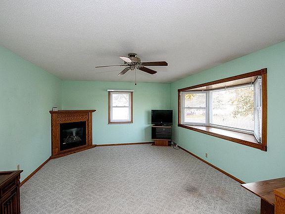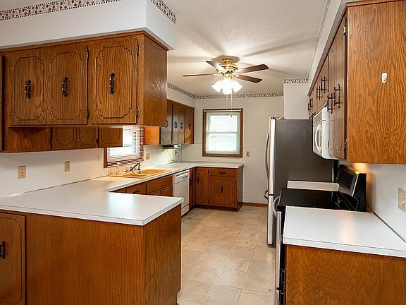 Brownton 3 bedroom rambler features a maintenance free exterior with steel siding, vinyl windows and new roof in 2024. Gas burning fireplace in living room, main level laundry and gas stove in lower level. Oversized double detached garage and nice sized yard.