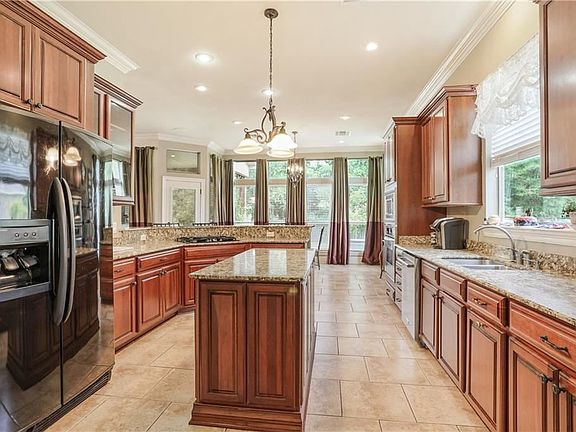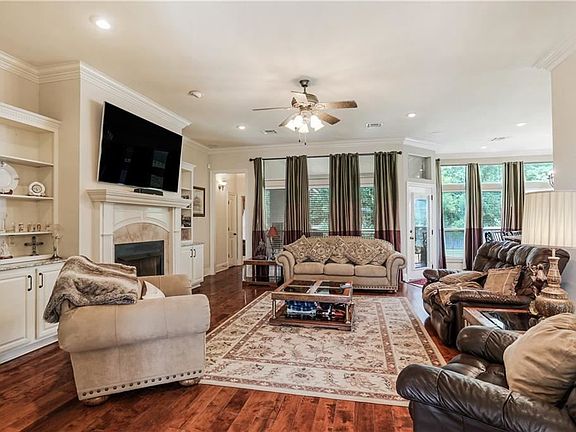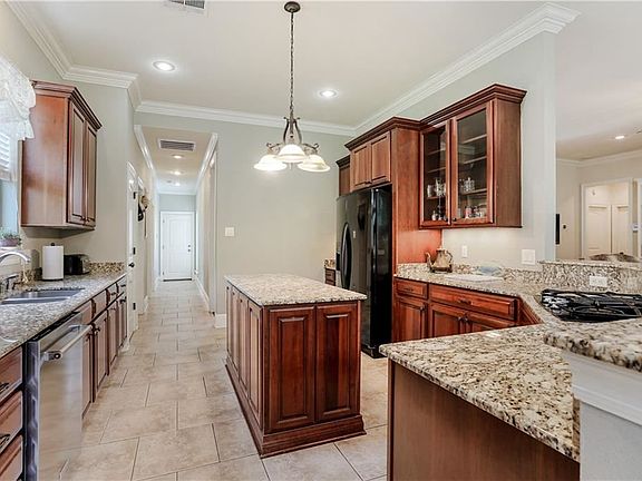 Gorgeous French Country home features 4 beds/3 baths, & open floor plan for entertaining or just relaxing on your covered patio overlooking peaceful wood setting. Lg, inviting great room features fireplace, built-ins & surround sound, opens to breakfast area & kitchen. Granite countertops, triple crown molding, & custom cabinetry to name just a few of the details. Bonus room that could be used as an office or bedroom. Lg primary bedroom leads to lg bathroom with garden tub. Flood zone C. This home is a gem!