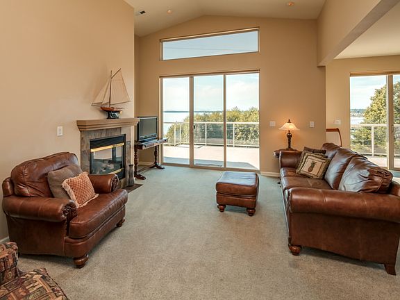 One-level, luxurious penthouse condo w/ELEVATOR, situated between Downtown Bellingham & Fairhaven, close to WWU. Amazing bay views from main living areas & master suite. Incredible deck for entertaining & enjoying spectacular sunsets over Bellingham Bay.Open Great Room concept, granite counters in kitchen & baths, gas fireplace, high ceilings, breakfast bar, gorgeous master suite. ELEVATOR access or outside access make this unit work for many.Bonus room with half bath on 1st floor. 2-car garage.