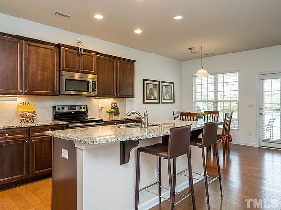 Green Hope E, Davis M & Green Hope HS, an unbeatable combination! This Davis Village home is walkable to shops, restaurants & parks. 10 minutes from RDU and RTP. 1st floor quest room w/full bath. Hardwoods throughout 1st floor. Open kitchen & family room. Kitchen w/SS appliances, large island, granite countertops & tile backsplash. Huge master suite w/sitting area, his & her closets. All Bedrooms have direct access to bath. Spacious second floor loft area. Large flat fenced yard w/ 25 ft HOA buffer.