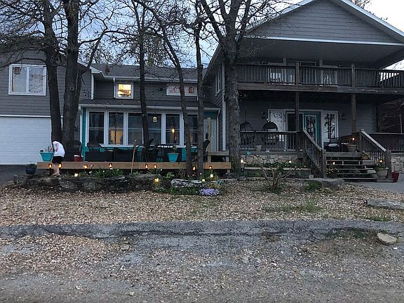Let the fun begin! Ideal lakefront home located on a double lot with unobstructed Tablerock Lake waterfront views and gentle walk to the water. This is the most fun place to live, boating, fishing, swimming and great community, plus just 5-10 minutes from shopping, Branson Landing, Hwy. 76 Strip. Perfect for full time living or Lakehouse getaway! Vaulted ceilings, sunroom, wood burning fireplace, great covered decks. 5-BRM 3 BA, plus office nook, craft room or sitting area, movie room with covered deck overlooking the lake. Located just 1-block from the community pool, tennis court and clubhouse.