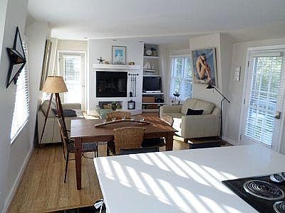 Make Provincetown your OWN with this 2BR/1BA top floor penthouse in the East End Gallery District. Enter off a deck into a sun-filled great room, perfect for entertaining. The kitchen features slate floors, a new picture window with harbor views, a new stove, both an undercounter refrigerator and freezer, and new white Silestone counters. The dining and living room feature new bamboo floors, a wood burning fireplace, and access to a spacious back deck. Both sunny bedrooms have berber carpet and large closets. The front bedroom has a Juliet balcony facing the harbor. Wonderful waterviews from the front of the condo! The back bedroom has views of neighboring gardens. The bathroom features slate floors, a frameless glass shower, and the washer/dryer. New split A/C systems in each room. Great rental history with potential to go much higher (est. 30k+) and pets for owners allowed. Buyer to assume sewer betterment. Furnishings negotiable.