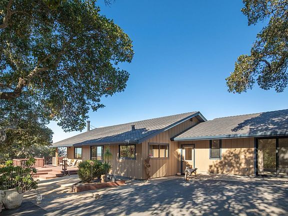 Located down a long private, gated driveway and set atop a secluded knoll, this 3 bedroom, 3 bathroom single level home features 2 master suites and significant updates! This tranquil property features beautiful wood floors, faux painting, vaulted ceilings and a fully remodeled kitchen complete with stainless steel appliances, gas cooktop, breakfast bar / island and rich knotty alder cabinets. A spacious deck and golden granite courtyard offer seamless outdoor living and provide ample space for guests. There is a single car garage, and large shed for additional storage or a great space to tackle home projects. The 3.4 acre lot features a fenced garden area with fruit trees, and mature oaks abound... as well as broad valley and mountain views! Truly a wonderful property for those seeking seclusion. The ultimate escape.