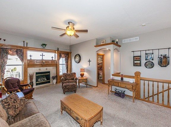 Well maintained 4BR 3BA one owner ranch. Covered front porch. Tile entry with guest/coat closet. Living room with fireplace (gas log) surrounded by windows for lots of natural light. Fully applianced kitchen includes breakfast bar, quartz counter tops & wood floors. Dining room with wood floors and double doors leading out to the deck. Main floor laundry in separate room with pantry, cabinets & hanging rod. Master bedroom feature vaulted ceilings & master bath with separate tub & shower, & walk in closet. Basement includes double view out family room with collection ledge below windows, 2 view out bedrooms, bonus room, full bath & great storage space with lots of quality built in shelves. 3 car garage with overhead storage, deck, stone patio, partial (2/3) wood fence, full sprinklers. Move-in Ready! 1 year home warranty provided. Seller is trading out stainless refrigerator in kitchen. Specials Almost Gone! All info deemed reliable but not guaranteed.