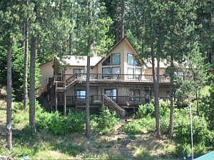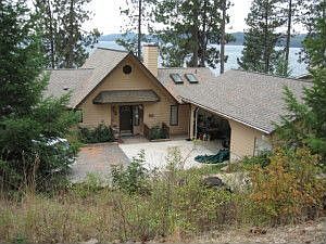 Coeur d'Alene Lake, Carlin Bay, 90' frontage, 4 bdrm, 3 bath custom home, 3304 sq ft, community sewer/water, 2.5 car garage, covered boat dock with boat lift.