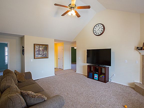 Newer 4 bed 2 bath in Ashcroft Estates. The exterior is brick and permanent siding, roof is 3-4 years old. Inside offers new carpet, vaulted ceilings, gas fireplace and an open floor plan. Back yard has privacy fence with storage shed and large deck. Home is also located close to Greenway trails access.