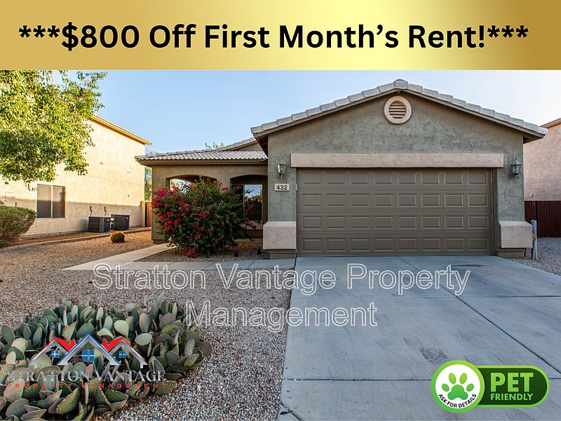 **Move In Special- $800 Off the First Month's Rent Welcome to 432 E Mountain View Rd a beautifully updated 3-bedroom, 2-bath home offering stunning golf course and mountain views through an open fence backdrop! This spacious residence features a large family room and a thoughtfully designed kitchen with granite countertops, a generous pantry, and upgraded natural maple cabinets throughout. Enjoy the comfort and style of all-new modern light fixtures, ceiling fans, and energy-efficient LED lighting installed throughout the home. The bathrooms have been refreshed with new shower heads and faucets, while the primary suite boasts a luxurious walk-in tile shower. Additional upgrades include a brand-new garbage disposal, a reverse osmosis drinking water system with new filters, and freshly painted closets in a crisp semi-gloss white. Brand new Wash/Dryer available upon request! The garage is equally impressive, featuring a brand-new insulated garage door and a sleek epoxy-coated floor. Outside, enjoy low-maintenance desert landscaping that complements the natural surroundings and enhances the home's curb appeal. With its beautiful setting, modern updates, and functional layout, this home is move-in ready and a must-see! *BEWARE OF SCAMS! We do not list our homes on Craigslist or Facebook Marketplace. Please get in touch with Stratton Vantage Property Management to confirm availability and rent price* INITIAL MOVE-IN COSTS - Security-Deposit - minimum is 1.25X monthly rent but not greater than 1.5X the monthly rent (75% may be refundable) First Month Rent + 3% Admin Fee + $75 Resident Benefit Package Setup Fee Lease Preparation Fee: $225 *Pets - If Applicable, a minimum Non-Refundable Pet Fee in the amount of $250 per pet is required - (Some Breed Restrictions Apply) Does Not Apply to Assistive Animals *Pets - If Applicable, the First Month of Pet Rent in the amount of $60-$80 per pet, depending on the type of pet(s), which includes a $30 pet administrative fee (Some Breed Restrictions Apply) - Does Not apply to Assistive Animals RECURRING MONTHLY COSTS Rent + 3% Admin Fee $75 Resident Benefits Package - (includes renters' insurance, credit reporting, rewards program, and more) *Pet(s) If Applicable, $60-$80 per pet, which includes a $30 pet administrative fee Does Not apply to Assistive Animals *BEFORE YOU APPLY TO RENT THIS PROPERTY, PLEASE VISIT OUR WEBSITE TO REVIEW OUR RENTAL QUALIFICATIONS AND LEGAL DISCLOSURES ADDITIONAL DISCLOSURES Brewer & Stratton Property Management LLC is an Arizona Limited Liability Company dba Stratton Vantage Property Management. 12-month minimum lease term (longer lease terms may be negotiated). Stratton Vantage Property Management does business in accordance with the Fair Housing Act. Stratton Vantage Property Management does not discriminate against anyone based on race, color, religion, sex, handicap, familial status, or national origin. The information contained in this ad is accurate to the best of our knowledge. Stratton Vantage Property Management is not responsible for any error or omission in the wording or content of this information. Amenities: refrigerator, dishwasher, microwave, range, community golf course, community pools, r.o. system