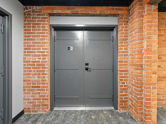 This stunning 1500+ sq ft condo offers an open concept layout with exceptional natural light & exposed brick - perfectly blending historic charm with modern finishes. A large entryway for welcoming guests and a juliette balcony that overlooks the city's skyline are two unique features that this condo holds. In the hallway to the updated bathroom, you will find a wall full of custom built-in shelving and an oversized closet, perfect for extra storage. Enjoy french doors to the bedroom, a rooftop terrace to unwind or entertain, secure building, and front row garage parking. If you are searching for lofty living in the city, this condo could be just what you are needing!