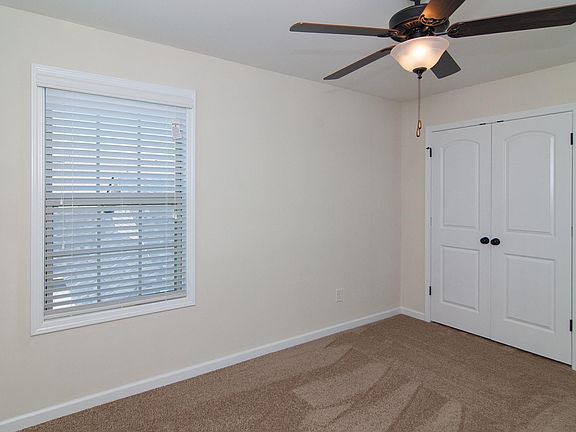 Hardwood in the living room, stairs, and upstairs hallway. All bedrooms are carpet. One Owner's Suite Upstairs, 3 extra bedrooms. The Owner's Suite Bathroom has a stand up shower, bath, and deluxe double vanity. Ceiling Fan in the Owner's Suite and in the living room. The kitchen, dining area, and laundry room have laminate. Laundry room has enough space to put in additional removable storage or an area to fold clothes. There is shelving over where the washer and dryer are. Home is under a year old. There is a 2-car garage and a driveway. The backyard is fenced in and there is a covered patio and an additional concrete pad in the backyard. Perfect for grilling or hanging out. Garage Door Opener and Front Door Keypad included. Security System with a camera also included.