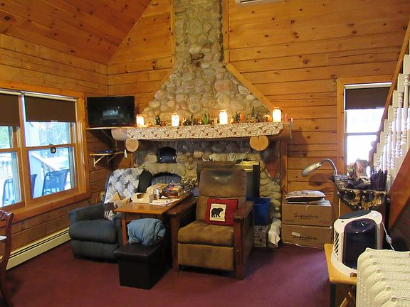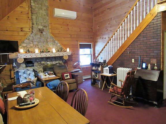 Relax all year long in this riverside Log Cabin nestled on 4.10 acres.. Private surveyed lot, 677 feet along The Great Chazy River, insulated detached 2 car garage with attic storage. Cathedral ceilings in living room with wood burning fireplace and exposed beams throughout home. Office could be small 4th bedroom if needed. 12 x 24 deck overlooking river. House is set up for propane generator. New metal roof summer '19. Go fishing right in your backyard! Plenty of wildlife with birds, turkeys and deer. Many extra's with this home including 10 kw stand-by generator, ductless air conditioning/heat pumps (2 ductless a/c & 3 heat/air pumps), seamless gutters, & multiple flower gardens.