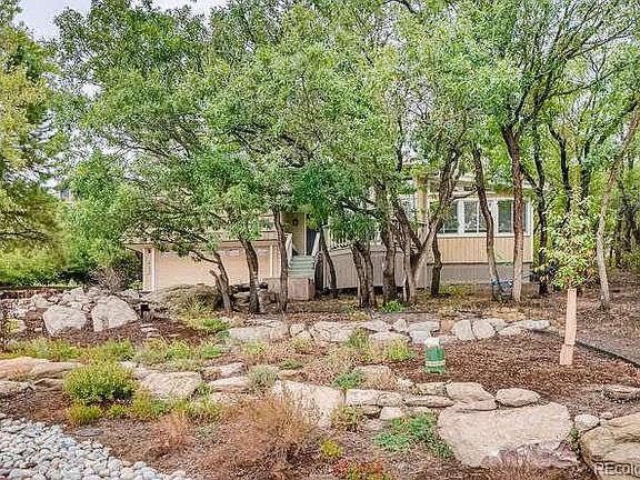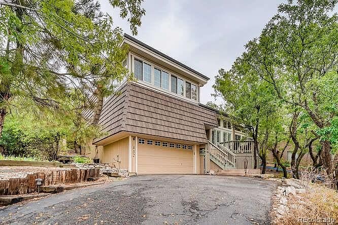 New Price! Custom home with million dollar views from home and the observation deck. This stunning home features beautiful beams, lots of natural light, and skylights. Open kitchen and dining area, hardwood floors on most of the main floor. Vaulted family room with built-in seating, cabinets and shelves. Main floor bathroom and bedroom with access to the back yard. Upstairs there are 2 bedrooms. The master bedroom opens up to a beautiful solarium with windows on 3 sides with amazing mountain views. Updated bathroom with quartz and bead board. Secondary bedroom has great views. Finished basement with rec room or bedroom, 3/4 bathroom and laundry area. The backyard has a deck and amazing rock outcroppings. Follow the path to the left up to the observation deck. Panoramic views of the front range, Pikes Peak and Devil's Head. Low maintenance yard, mature landscaping. Low taxes, no HOA. Homes like this are hard to find. Don't miss this gem!