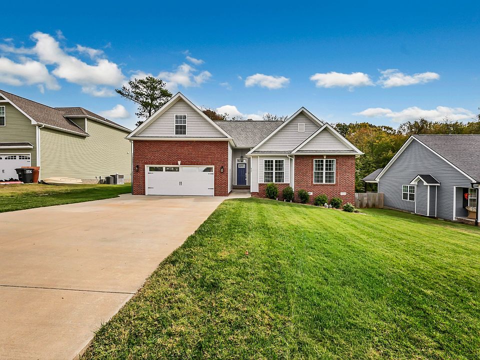 Welcome home to your private retreat on nearly half an acre with no backyard neighbors and a peaceful wooded view! Step inside to a bright entry foyer with tile that opens into an airy living space featuring laminate floors and a cozy gas fireplace. The stylish kitchen steals the show with granite counters, stainless appliances, a pantry, and two-tone cabinetry—classic white on top, bold blue on bottom—for a designer look. Enjoy morning coffee at the breakfast bar or casual meals in the eat-in area overlooking the trees.The primary suite is a true escape with double vanities, an oversized shower, and a walk-in closet. Bedrooms 2 and 3 offer upgraded carpet and ceiling fans for comfort. The 4th bedroom is located upstairs & is currently being used as the crafting space, it includes a half bath, closet, & plenty of space.. Relax or entertain on the covered back deck while soaking in the wooded view, and rest easy with a ventilated crawlspace system. Washer and dryer remain for a move-in ready lifestyle. With a 2-car garage, gas fireplace, and smart layout, this one has it all!