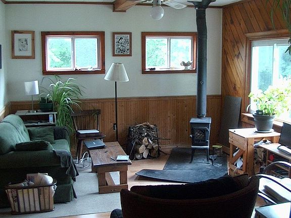 Two bedroom with office room ranch style on a high fieldstone foundation with great mountain views, town city and water, curbside garbage pick up every week, walk to stores, dead end street, safe quiet neighborhood. Forced hot air oil heat plus wood stove. Wood stove does most of the heating. Free year's supply of seasoned hardwood included in the price.