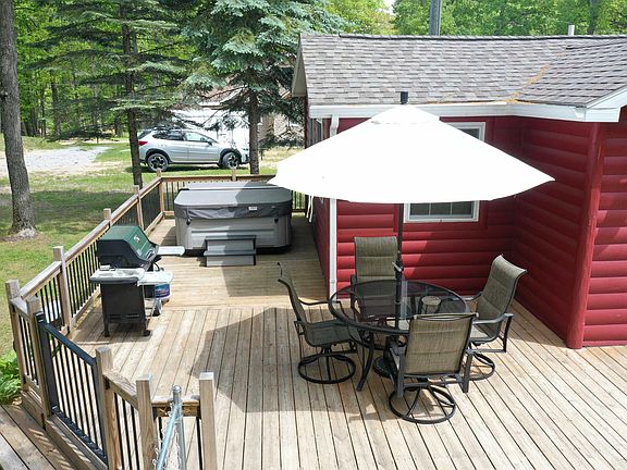 Recently remodeled approx. 1140 sq. ft. 2 bedroom (possibly 3) 1.5 bath cottage/home located on a bluff over looking Island Lake ... and includes a beautiful lake front lot with approx. 45 feet of lake frontage with sandy beach and a fire pit! Some recent updates include: new roof, gutters, propane on-demand water heater, kitchen and living room remodels, the addition of a half bath in the laundry room, and new commercial-grade vinyl plank flooring. Outside you'll find a fenced-in backyard, a large deck with a new hot tub, a 28x40 heated and insulated stick-built barn with workshop, a 12x16 guest cabin that just needs some finish work inside, and a large incredibly well-built chicken coup that could be converted into a screened-in gazebo. A short walk across the road brings you to the lakefront lot on beautiful electric motor only Island Lake. All of this conveniently located within the Huron National Forest (ride from your door to ORV and snowmobile trail systems!) about halfway between Rose City and Mio and the world-famous Au Sable River.
