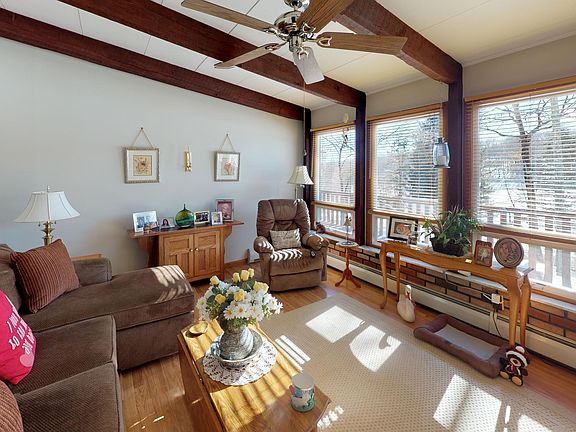 Lakefron- with prime views! Ranch has so much to offer-3 bedrooms-master suite has dressing room/bath and gorgeous views of the lake. Access to deck from ms/br to enjoy your morning coffee. EIK, formal dining room w/fireplace, LR overlooking the lake, laundry on main floor, 2 baths, full partially finished walkout basement with barn siding, workshop, utility room 3 zone oil heat and no maintenance yard!