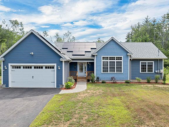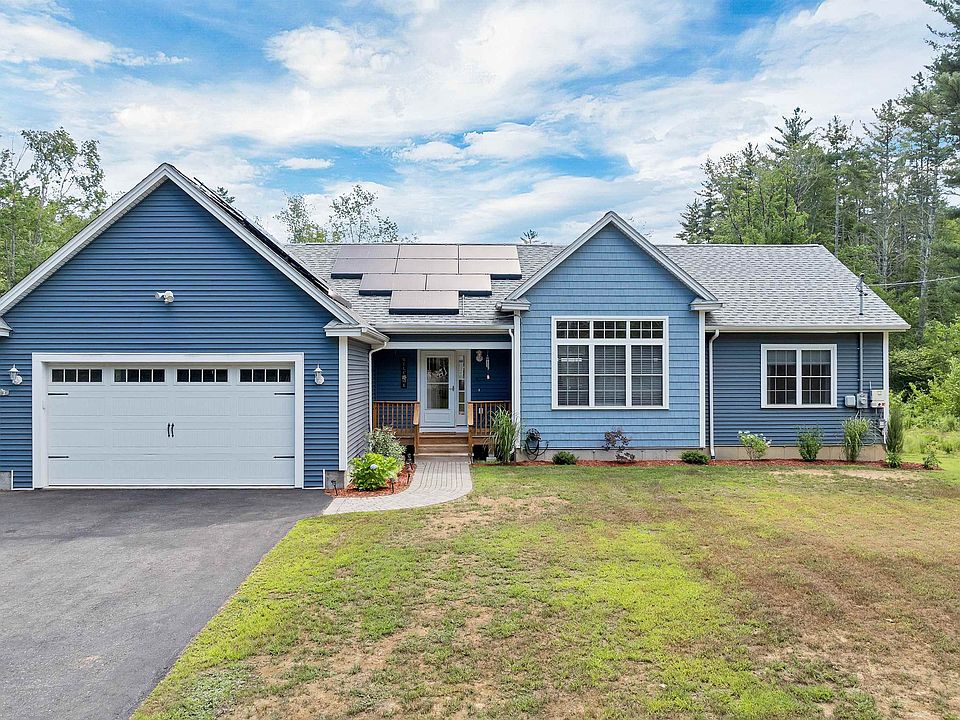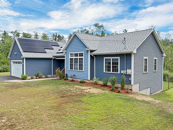Charming 5-Year-Young Ranch on 5+ Acres in Serene Danville, NH Nestled on a quiet country road in the peaceful town of Danville, NH, this beautiful one-level ranch offers privacy, convenience, and modern comfort—all within commuting distance to Route 101, Manchester, and the Seacoast. This thoughtfully designed home features a desirable split-bedroom layout. The spacious primary suite is tucked away on one side of the home and includes a private bath with a tiled walk-in shower and double sinks. Two additional bedrooms are located on the opposite side, offering excellent privacy for family or guests. The heart of the home includes a stylish designer kitchen with white shaker-style cabinets, granite countertops, and an open-concept layout that flows seamlessly into the dining and living areas. Sliding glass doors lead to a back deck overlooking the fully fenced-in yard—part of a tranquil 5+ acre lot perfect for dog lovers or outdoor enthusiasts. Additional highlights include: Walk-in laundry room Attached 2-car garage Large finished lower-level recreation room with daylight windows, walkout access, and ample storage Leased solar panels to help reduce utility costs This turn-key home offers the ideal blend of country charm and modern amenities in a natural, private setting. Don’t miss this rare opportunity!