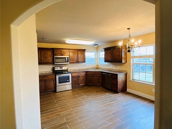 New on the market 3 bed, 2 bath, 2 car garage with new roof and appliances! This home has open-split floor plan, large master, jetted tub, covered back patio, upgraded flooring, gas fireplace, privacy fenced backyard, close to schools, shopping and emergency services. Nestled in a quiet neighborhood within walking distance of schools and park. This property would be great for families or young professionals.