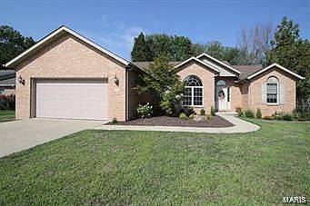 Don't miss this ranch offering 3 bedrooms 3 bathrooms on a full basement! Vaulted great room with gas fireplace, 10-foot ceilings in the entryway and dining room. The bright, open floor plan offers a split bedroom concept with the master bedroom featuring a sitting area and luxurious bathroom with walk-in closet. The full unfinished basement has 2 egress windows for the option of finishing 2 extra bedrooms. Quality features include Anderson thermal, tilt-in windows, high-efficiency furnace and 75% brick exterior. Outside patio for entertainment in the private backyard. Beautifully landscaped and ready for occupancy. Immediate access to interstate for easy commute to St. Louis or Scott AFB!