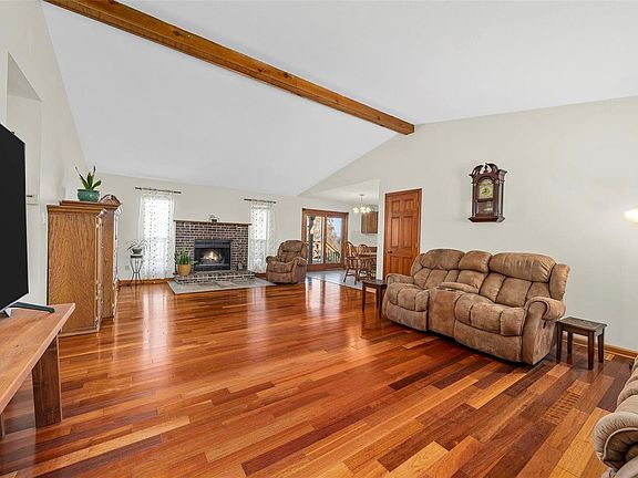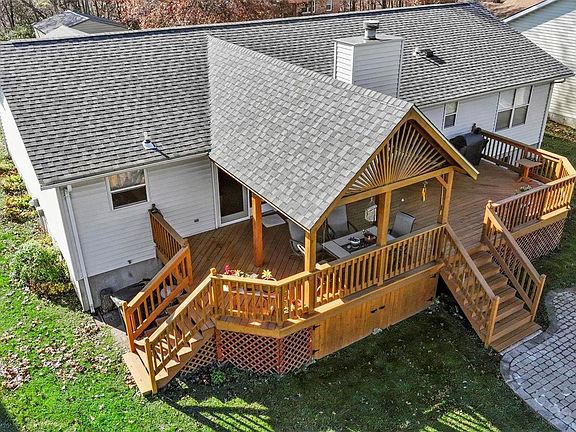 Under Contract! Open House Cancelled!Nestled on a quiet, private street backing to woods on almost half an acre this Fenton ranch is a find! Enjoy relaxing on the expansive covered deck that is 37ft long overlooking the level back yard. The gabled roof over the deck is impressive! Find the mahogany wood floors graced by the vaulted beamed ceiling and a woodburning fireplace! The great room is open to the kitchen and breakfast room with upgraded wood style sliding door to the deck. This three bedroom, two bath home features upgraded baths with pedestal sink and the primary bath has upgraded vanity and floor. Primary bedroom features wooded view and walk-in closet! Roof is only 3 yrs new, furnace and AC just last year along with a 1yr new water heater! Close to Gravois Bluff and Hwy 141 everything you need is nearby! Check this one out before it’s gone!