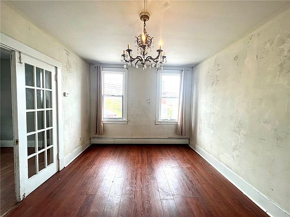 Brick home with covered front porch on a corner lot and an attached garage. Fenced in and back yard with a firepit. Large master bedroom with plenty of closet space. Large three season room off of the kitchen. Full bath upstairs and an additional shower and toilet in the basement.