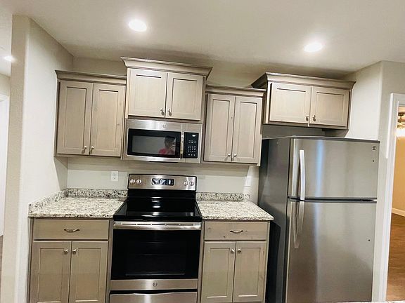 This LIKE-NEW 3 bed 2 bath, a detached garage home is conveniently located on a corner lot in a quiet neighborhood. The kitchen comes equipped with matching appliances, custom cabinets and granite counters. Hardwood flooring in the living room and carpets in bedrooms. It is a perfect house for a small family. If you are interested in the rental, please briefly introduce yourself when you reply for a better chance of getting considered. Tenant pays for all utilities (electric, water, sewer, and trash). No smoking allowed. Up to two small pets allowed. Applicants must have verifiable income of 3 times the monthly rent. No prior evictions or felonies.