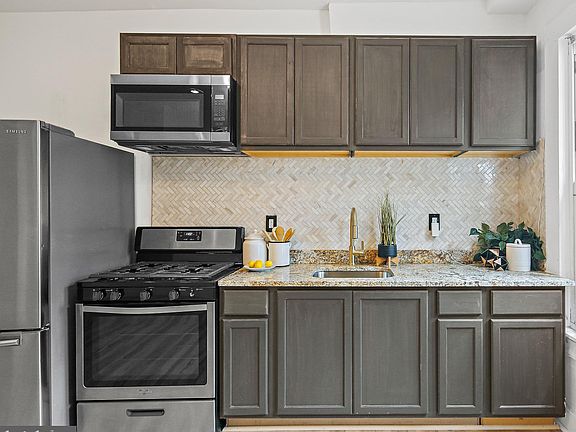 This 3 Bedroom, 1 Bath, newly renovated Rowhome with rear courtyard patio in Mcelderry Park, Must be seen! Enter into the Foyer with new laminate flooring which continue throughout the Main & Upper Levels. Next, the Bright Living Room with Plenty of Natural Light and continue to the Dining Room. The recently renovated Gourmet Kitchen features Gas cooking, Stainless Steel Appliances, Built-in Microwave, Granite Counters, Herringbone Pattern Tile Backsplash and door to the Rear courtyard patio. Continue upstairs to find the Primary Bedroom with New flooring and two additional spacious bedrooms, one with a skylight, plus a renovated Full bath with Tub/shower, Subway Tile surround, New vanity, Tile Flooring and brand new Gas Water Heater. The unfinished lower level features the laundry and has plenty of room for storage. Located in the neighborhood of McElderry, this home is close to commuter routes, dining, and Patterson Park!