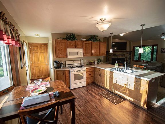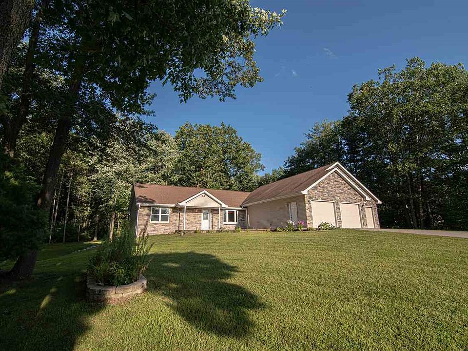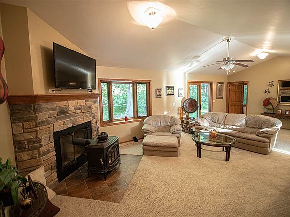 Walkout zero entry ranch on an acre an a half partially wooded lot just minutes north of Green Bay is set back off the road and boasts open concept, kitchen with all appliances included, under cabinet lighting, walk in pantry, living room with wood stove and vaulted ceiling, Master suite with full bath and large walk in closet, good size bedrooms, large windows throughout home, solar tubes in bathrooms, first floor laundry w&d inc., finished lower level with half bath and plenty of storage, large 3 stall garage with extra deep third stall and 2 service doors, large yard with wooded perimeter.