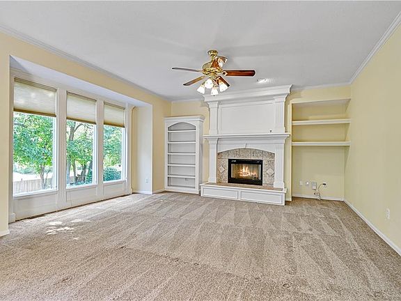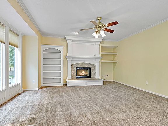 • Features: Built-in Features, Carpet, Ceiling Fan(s), Fireplace