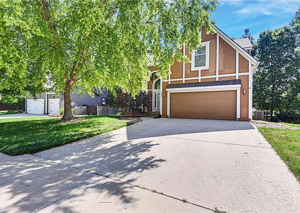 BEAUTIFUL 2 STORY IN OLATHE! Plenty of Natural Light with the Vaulted Entry and Breakfast Room! Entertaining made easy with Kitchen Opening to Breakfast Room and Family Room! Light and Bright Kitchen includes Wood Floors, Granite Counter Tops and Pantry! Stamped Concrete Patio off Breakfast Room! Spacious Master Suite with dual vanity, separate soaking tub and walk-in closet! 3 more bedrooms, 2nd bath and Convenient Laundry Room Finish off this level. HUGE Basement Finished in L-Shape with Built-Ins and 2nd 1/2 bath! Great location--walking distance to schools, minutes to Lake Olathe Park and quick access to K-7! Welcome HOME!