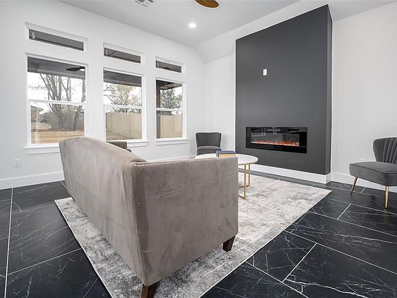 If you are looking for style, monochromatic color schemes and elegant lines, you may have just found your new home. From the gorgeous painted stucco exterior, you step inside to be greeted by high ceilings and upscale finishes. The living room has plenty of natural light to showcase your open floor plan and electric fireplace with color and heat settings. There is room for a 4-6-person dining table in your new dining space. The kitchen is set up for the chef in your life! Equipped with cabinetry that meets the ceiling, a pot filler and beautiful granite countertops, making meals should be an enjoyable task. The stainless-steel appliances help to complete the look. There is a separate pantry along with the built-in additional pantry in the kitchen for all of your storage needs including small kitchen appliances and that roasting pan you never know where to place. The primary bedroom has a gorgeous accent wall with accent lamps built in. As you continue on, you are greeted with dual sinks and a beautifully tiled shower all in the en-suite bathroom. The secondary bedrooms have large closet spaces, and both have access to the hall bathroom that has a tiled tub/shower combo. Outside on your large, covered patio you have just the right setup for outdoor entertaining and a large backyard. What are you waiting for? Come see your new home!
