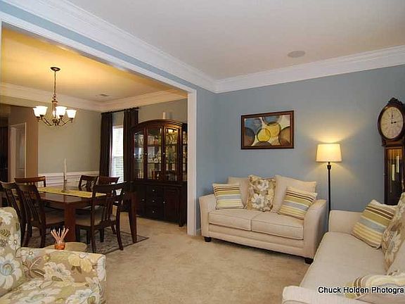Hardwood foyer and formal living and dining rooms with custom molding create welcome entry. Open site lines continue beyond formals to huge kitchen with family and informal dining areas. Kitchen features granite counters, oversized island, stainless appliances, tile backsplash, pantry. Family room with gas log fireplace is large enough to accommodate oversized furniture. Home office is located just off the family room and large deck overlooking the backyard is just outside the sliding glass doors from informal dining. Large Master Suite features his and her walk-in closets and 5-piece luxury bath. Bonus room,2nd bedroom with private bath, community pool and playground, fenced in yard, home next to and adjacent designated green space.