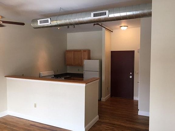 Unique apartment located downtown on the 4th floor in the historic A&D Tile building. Unit has hardwood floors. and washer and dryer are located in unit. Secured entrance. Large parking lot with first come, first served parking for tenants. 1st come, 1st served off-street parking. Owner pays for garbage & recycling, tenant pays for all other utilities-electric, gas (heat & hot water), internet, water & sewer fees.