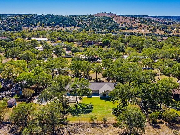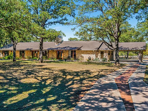 Rare 5 bedroom, 4.5 bathroom ranch style, rock home situated on an oak tree studded 1.1 acres in The Woods subdivision just outside the city limits. The expansive covered porch with D'Hanis brick walkway on the front of the home invites guests to come and sit awhile and have a glass of tea! High vaulted ceilings welcome you as you enter the living room that is open to the kitchen and dining area. The kitchen is equipped with custom cabinets, corian countertops, new microwave and dishwasher, and a beautiful view of the backyard and ranch beyond. There are 5 large bedrooms--3 of which have ensuite bathrooms. The main bedroom has 3 closets and an office area. The bathrooms have all been updated with granite countertops. In addition to the other rooms you'll find an additional office, a large utility room, and a hobby/workshop room. This home offers fantastic privacy and backs up to raw ranch land owned by Comanche Trace. The huge backyard is completely fenced with plenty of spaces for gathering. The roof was replaced about 6 years ago with three dimensional, 30-year shingles. High-end Pella windows throughout. Seller believes the sqft of the home to be ~200sqft larger than KCAD report