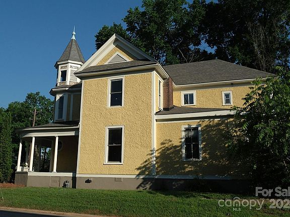 The 1907 D.C. Bradshaw House offers historic home lovers many coveted features including 10' ceilings/6 fireplaces, wrap-around porch, third-story turret with slate roof & copper detail, stained glass windows, & a stunning staircase with original hand-carved detail. Currently owned by Historic Salisbury Foundation, a 2024 stabilization included pebbledash repair, turret restoration, porch column replacement, exterior paint, new roof, & more. A pivotal structure in a National Historic District, this property is eligible for State Historic Preservation Tax Credits, which enables the new owner to recoup 15% of renovation costs. Easy walk to historic and thriving downtown Salisbury NC, you'll find breweries, coffee shops & bakeries, fabulous restaurants ranging from taquerias to fine dining, and shopping! Extensive renovation is required, including HVAC, electrical, plumbing, flooring, kitchen & baths. 4330 sq. ft(no Hvac). Home protected by Historic Salisbury Foundation's covenants.