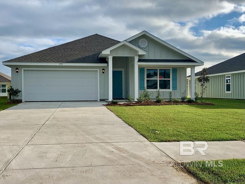 Welcome to Raley Farms phase 2 conveniently located on Country rd. 8 just minutes from the white sandy beaches of Gulf Shores. Community amenities include a zero-entry swimming pool overlooking a pond with large oak trees and beautiful scenery. The popular CALI plan offers an open concept floorplan with 4 bedrooms & 2 full baths. This home features granite countertops, EVP snap lock flooring & LED lighting package throughout. The primary suite offers a roomy attached bathroom with a double sink vanity, garden tub, 5’ walk in shower, huge walk-in closet. The second & third bedrooms are to the front of the home, on either side of the second full bath. The fourth bedroom is across the hall from bedrooms 2 & 3 near the garage entrance and the large laundry room. The Cali plan also includes a wide covered back porch area for catching sunsets or entertaining guests. * This home is being built to Gold FORTIFIED HomeTM certification, which may save the buyer on their homeowner’s insurance. (See Sales Representative for details.) **This home features our Home is Connected (SM) Smart Home Technology, which includes control panel, doorbell, smartcode lock, two smart light switches, and thermostat, all controlled by one app. (See Sales Representative for complete details on these smart home features.) ***Pictures are of similar home and not necessarily of subject property, including interior and exterior colors, options, and finishes. *Home is under construction.