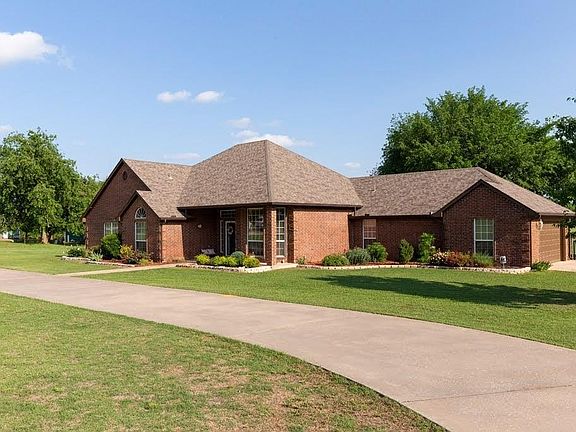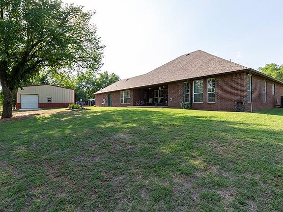 Immaculate from the central entry to the office/dining, and thoughout! HUGE laundry w/sink. HUGE master w/safe room! Items added by owner recently: New exterior paint, interior paint, carpet, wood floors, heat & air, roof (40 yr high impact), gutters w/leaf guard, garbage disposal, refrigerator, remodeled shower & counters & tub surround in master bath, replaced toilets in hall and master baths, faucet in half bath, redefined flower beds, added 30 x 40 shop, cement parking. Pole barn stays but round pen will not. Refrigerator stays. Propane gas for fireplace logs. Seller will offer a home warranty up to $437 for buyer at closing. Curtains in two guest rooms are reserved as are all items & shelving in the shop. This house is BEAUTIFUL. The horse has loved her five flat acres! The view is amazing out the back patio, & home is close in to town & easy access to HWY 81 & HE Bailey. You will love this one! Give us 2 hrs. notice, please!